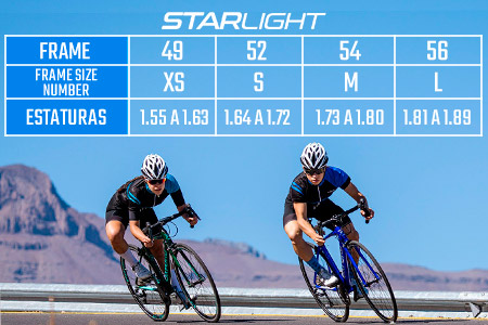 | Altura Recomendada | 49: 1.55 a 1.63, 52: 1.64 a 1.72, 54: 1.73 a 1.80, 56: 1.81 a 1.89 |