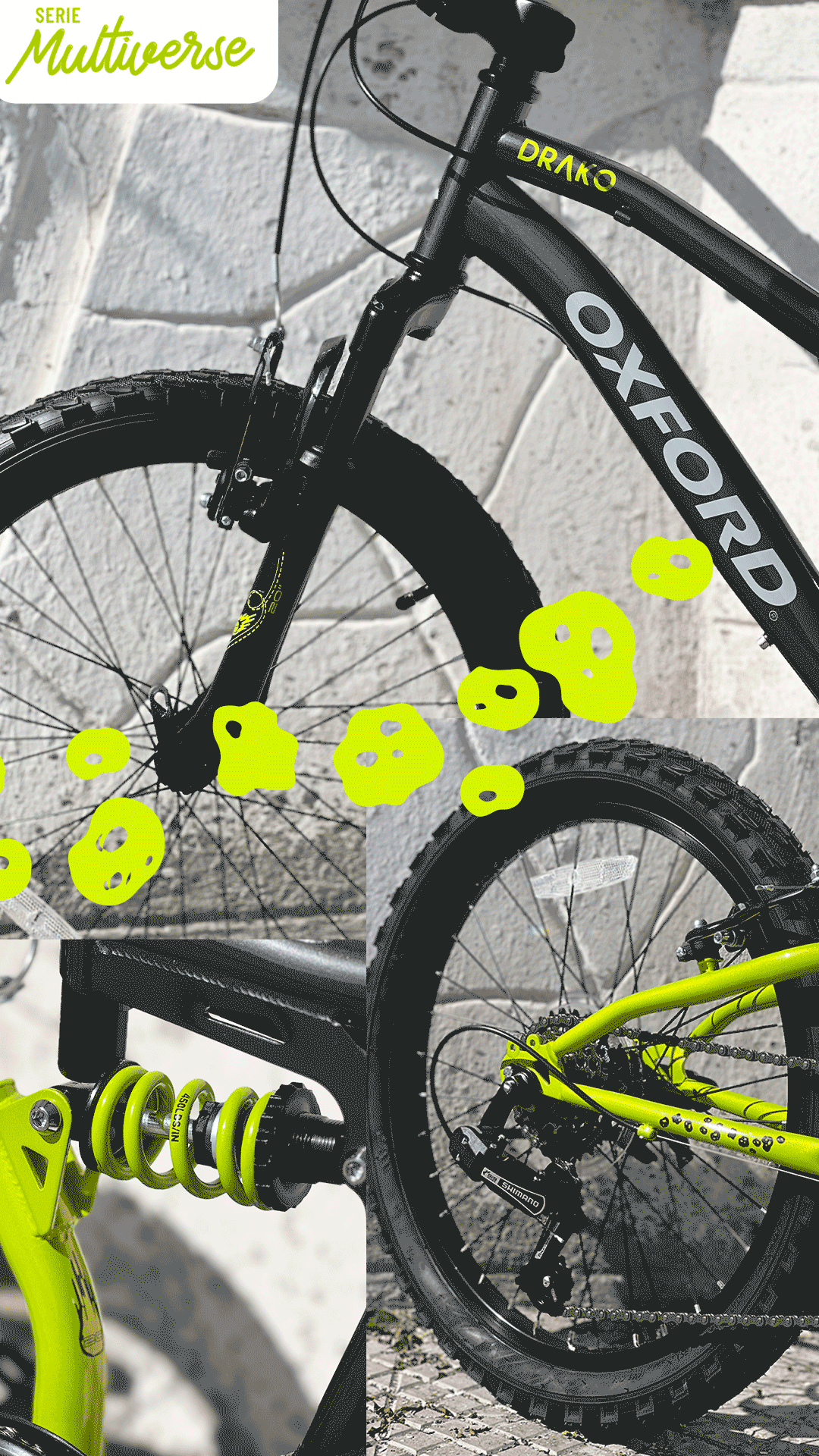 ¡Pedaleos emocionantes y aventuras todo terreno! Con Drako tu hijo/a se podrá iniciar en el mundo del ciclismo y vivir la verdadera aventura sorteando todos esos pequeños obstáculos del camino. Drako cuenta con seis velocidades, suspensión en marco y horquilla, para mantener más cómodo al mini rider.