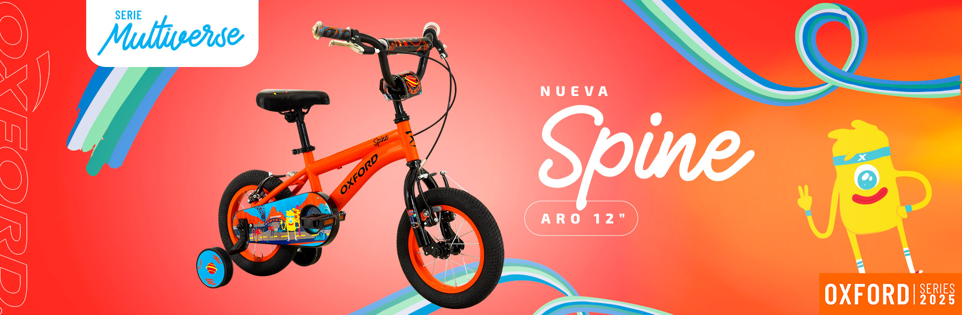 ¡Sumergimos a niños y niñas en un multiverso de aventuras arriba de una Spine 12”! Sobre esta bicicleta descubrirán el poder "Nitro" junto a Sporty, Diana, Flashy y el resto de la pandilla Multiverse. Spine 12" combina la seguridad y diversión gracias a su resistente cuadro de acero, frenos V-Brake (delantero y trasero), ruedas estabilizadoras removibles y cubrecadenas, ¡Para una infancia sana, deportiva y creativa!
