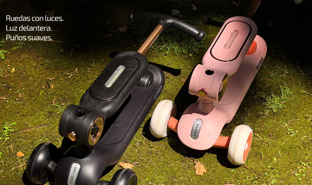 El Scooter con Asiento Oxygen es el compañero ideal para acompañar a los niños en sus primeras etapas de equilibrio y movilidad. Su diseño 2 en 1 permite usarlo primero como correpasillos con asiento (para los más pequeños) y luego como un scooter tradicional, ajustándose al crecimiento y las habilidades de cada niño.